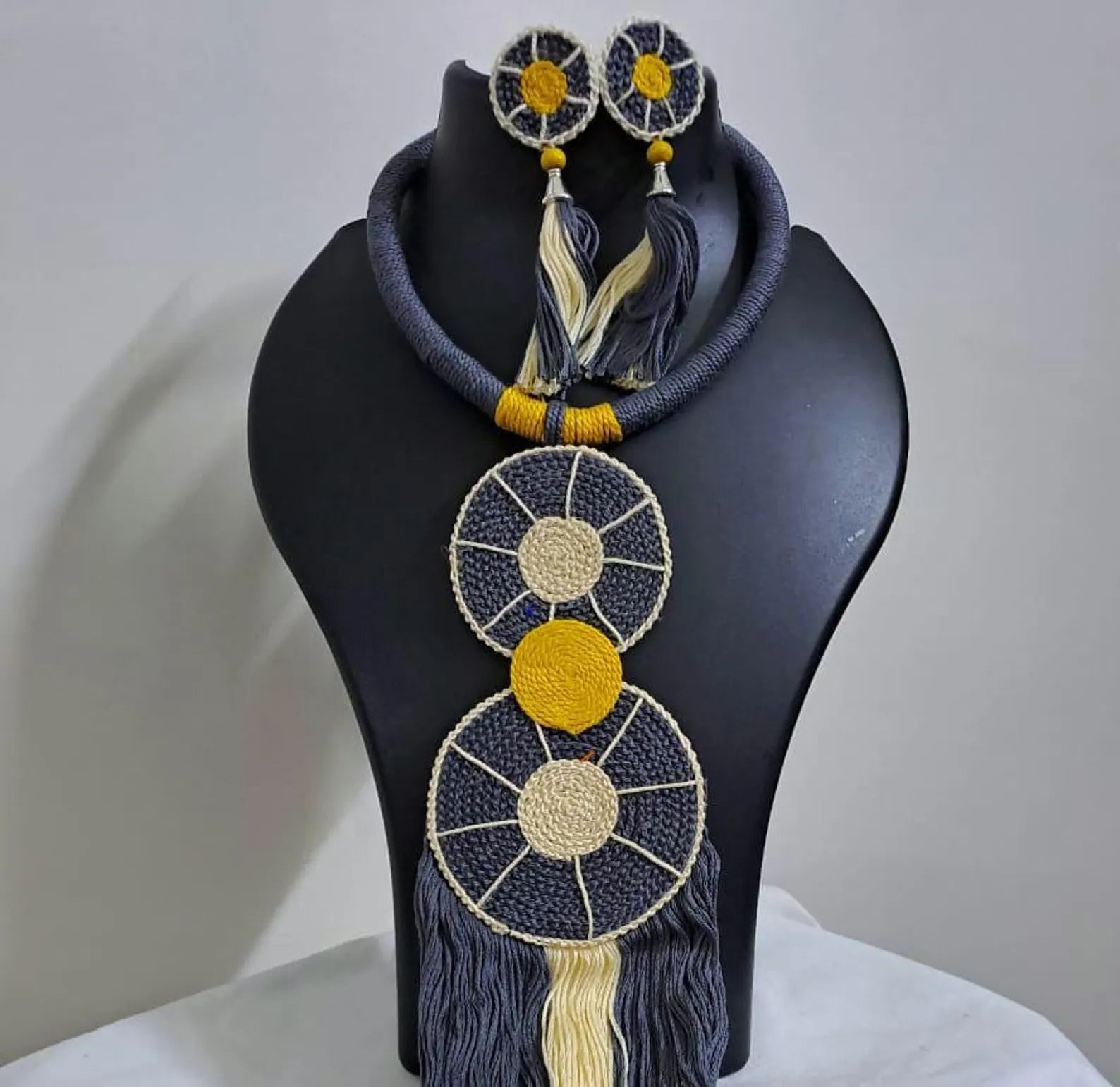 We specialize in handcrafted jewellery including glass beads jewellery, crochet jewellery, Kutch mirror work jewellery, alloy necklaces, thread jewellery, fabric jewellery, jute jewellery, hand-painted jewellery, and terracotta jewellery.